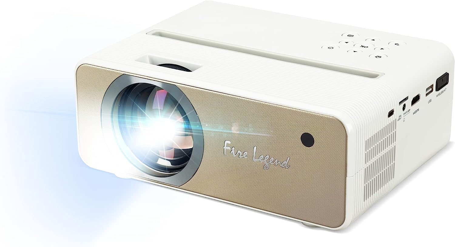 Components included: lens cap, HDMI cable, power cable, IR remote control (batteries not included), wireless adapter